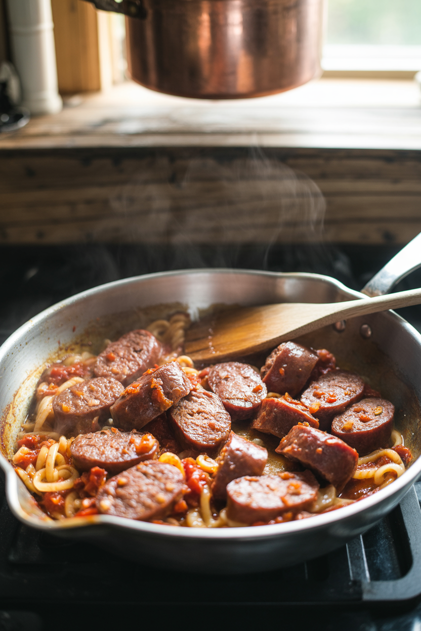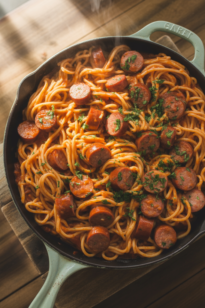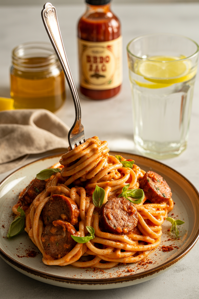 This Spicy Honey BBQ Sausage & Pasta is the ultimate one-pan wonder—packed with smoky sausage, al dente pasta, and a sticky-sweet-spicy sauce that coats every bite. Perfect for busy weeknights when you want big flavor with minimal cleanup!