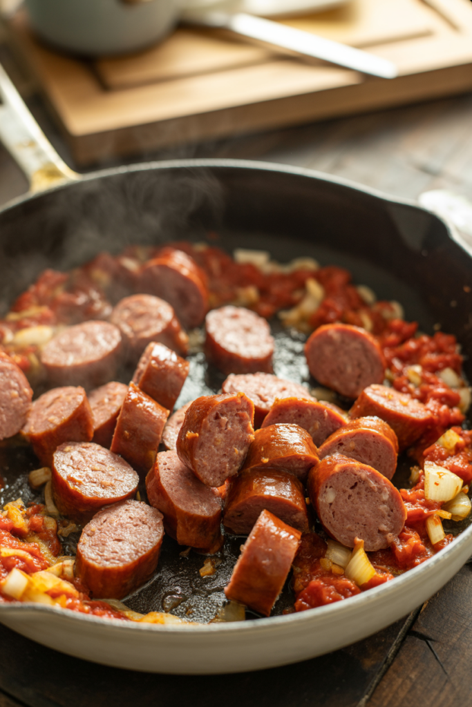 - Stir in the browned sausage and cook for 2 more minutes to heat through.