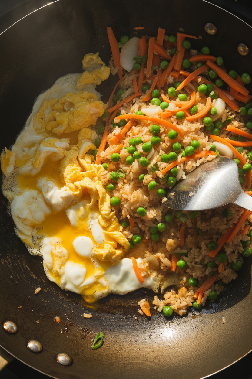 Keywords: egg fried rice, Chinese fried rice, quick dinner recipe, takeout copycat, 15-minute meal, leftover rice recipe