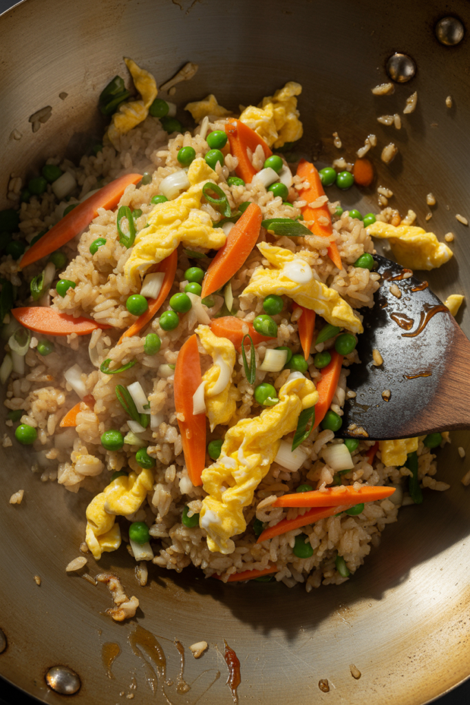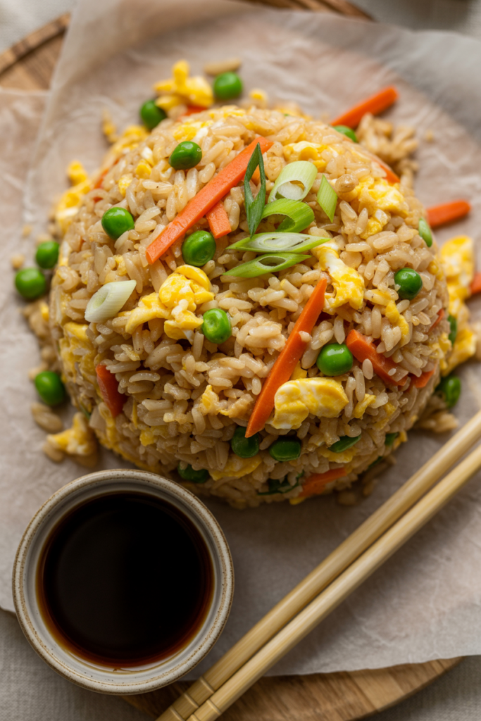 Authentic Chinese-style fried rice with separate, fluffy grains and rich egg flavor. This version uses simple pantry ingredients but delivers maximum taste with pro techniques. Perfect for using leftover rice!