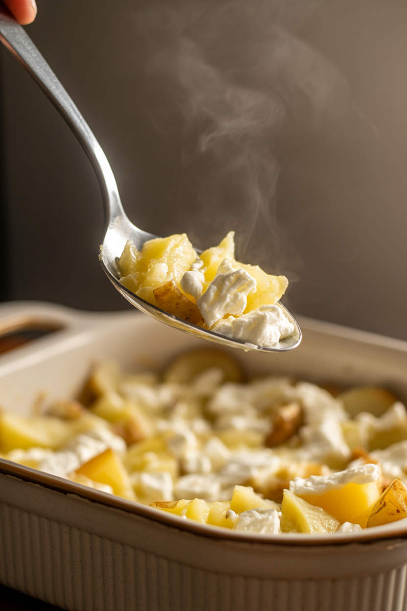 - Gently stir the softened feta into the potatoes or leave it whole for scooping.